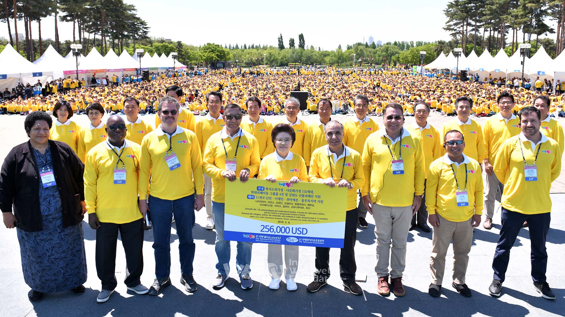 Sau lời chúc mừng của các vị khách quý, tấm bảng trao tặng tiền quỹ được truyền đạt. Thông qua Đại hội đi bộ lần này, Quỹ WeLoveU chi viện tiền quỹ 311 triệu Won để giúp 135 gia đình thiệt thòi phúc lợi, gia đình đa văn hóa, 4 Group Home, nạn nhân vụ cháy rừng Gangwon ở Hàn Quốc; dân tị nạn, nạn nhân, nạn nhân khí hậu, tầng lớp yếu kém ở 11 quốc gia: Jordan, Iraq, Mozambique, Lào, Bangladesh, Fiji, Việt Nam, Uzbekistan, Bờ Biển Ngà, Zambia, Nigeria v.v…