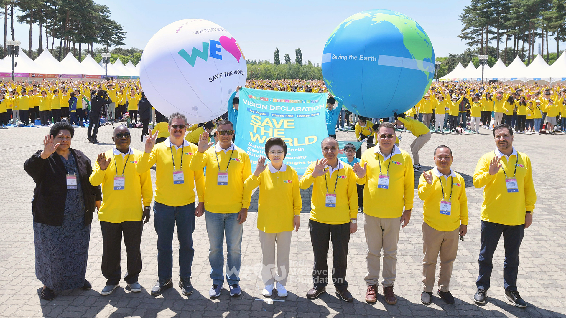 iếp theo, phần 2: lễ tuyên bố triển vọng “Save the World” được tiến hành. Lễ tuyên bố được tổ chức để đề ra tương lai hoạt động của Quỹ WeLoveU sẽ được diễn ra trên khắp làng địa cầu, phát biểu văn tuyên ngôn có chứa kế hoạch thực hiện cụ thể và mục tiêu hoạt động như: “Cứu trái đất (Saving the Earth)”, “Cứu mạng sống (Saving Lives)”, “Cứu nhân tính (Saving Humanity)” v.v… Sau đó quả khí cầu có chữ ký ủng hộ của nhân viên Quỹ WeLoveU và đại sứ các nước được treo trên trời. Những người tham gia đồng cảm mục đích cứu trái đất gặp nguy cơ, và vỗ tay để biểu hiện tấm lòng cùng tham gia việc tạo dựng tương lai đầy hy vọng của loài người và trái đất khỏe mạnh.