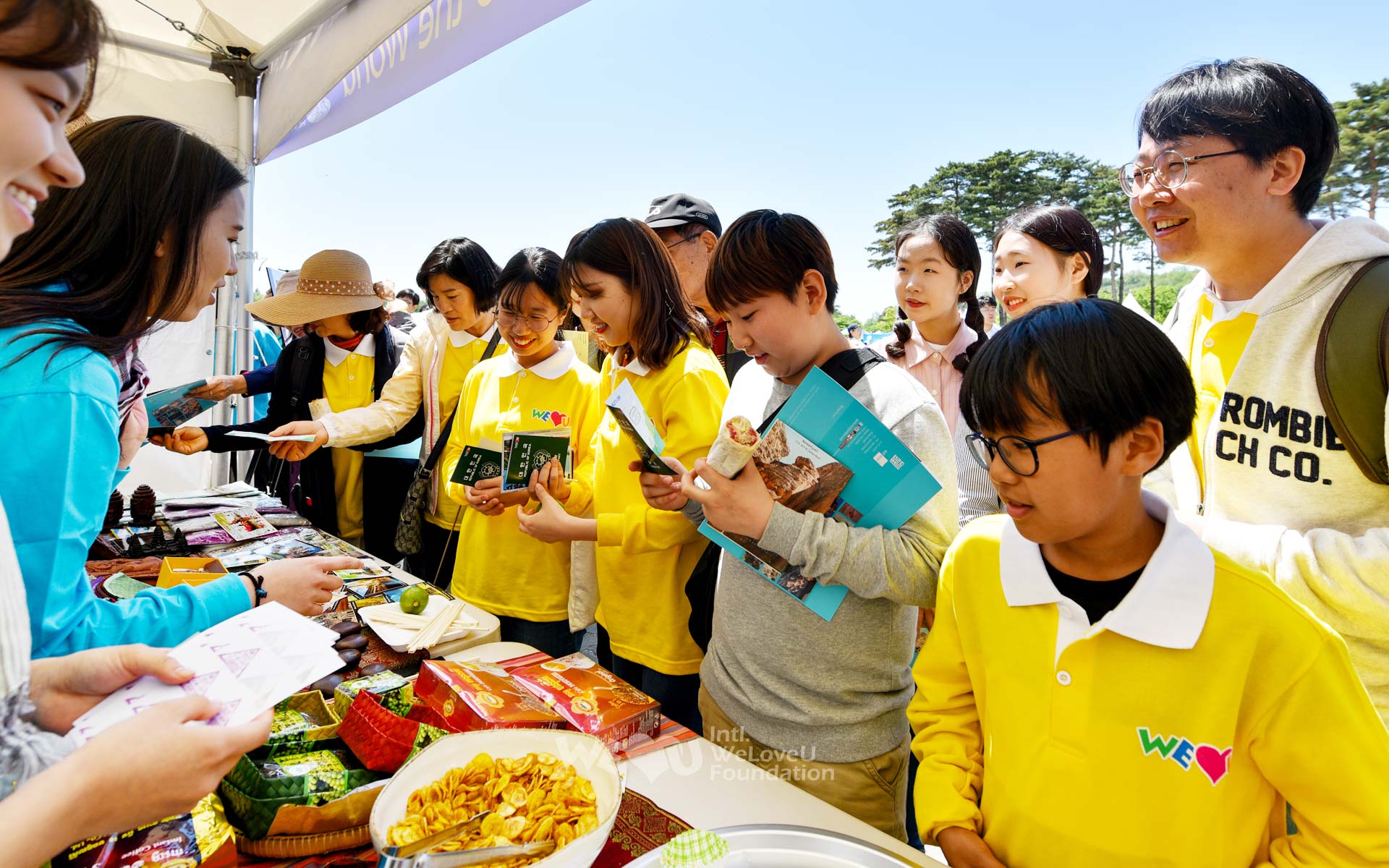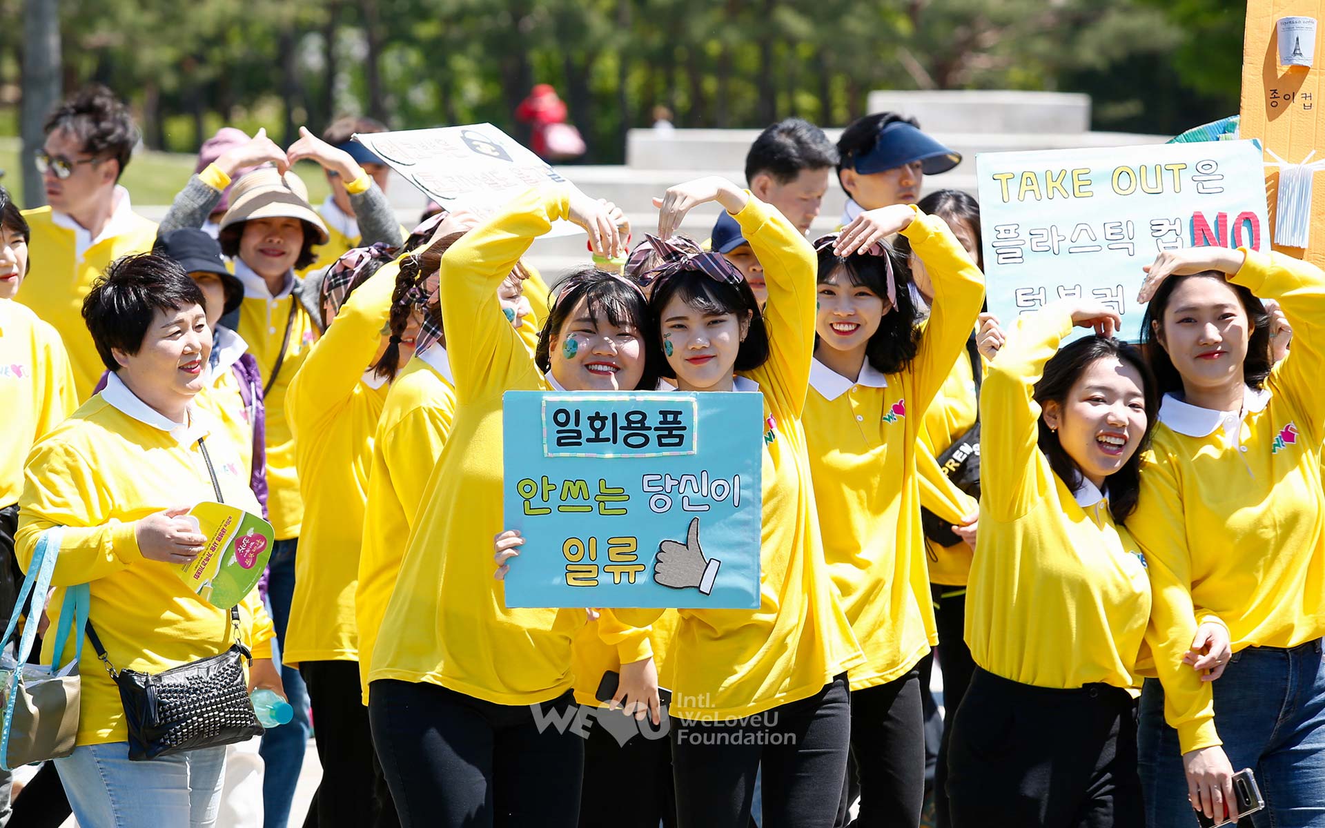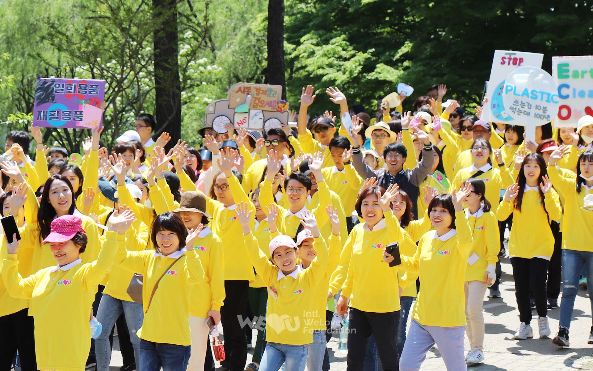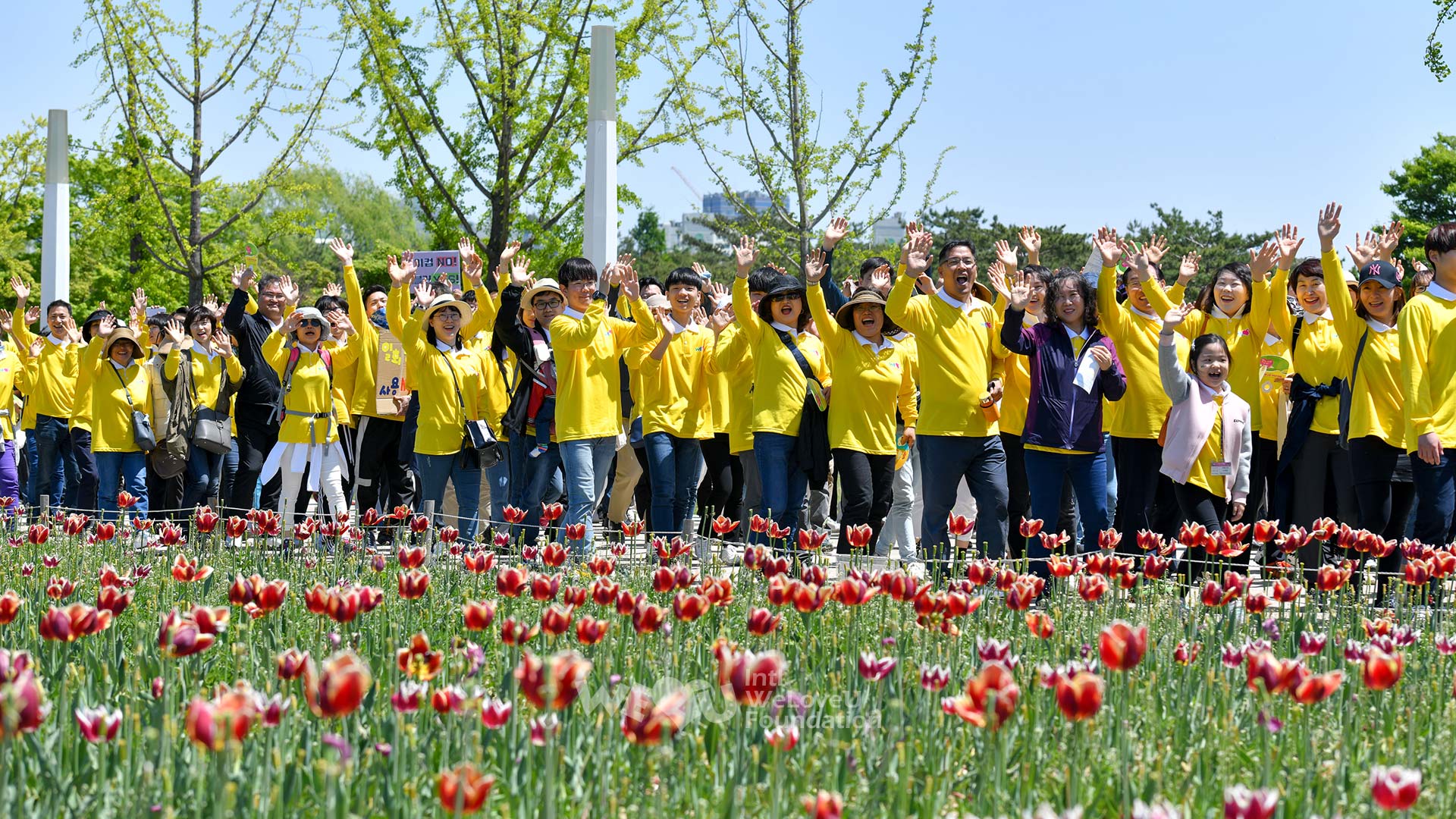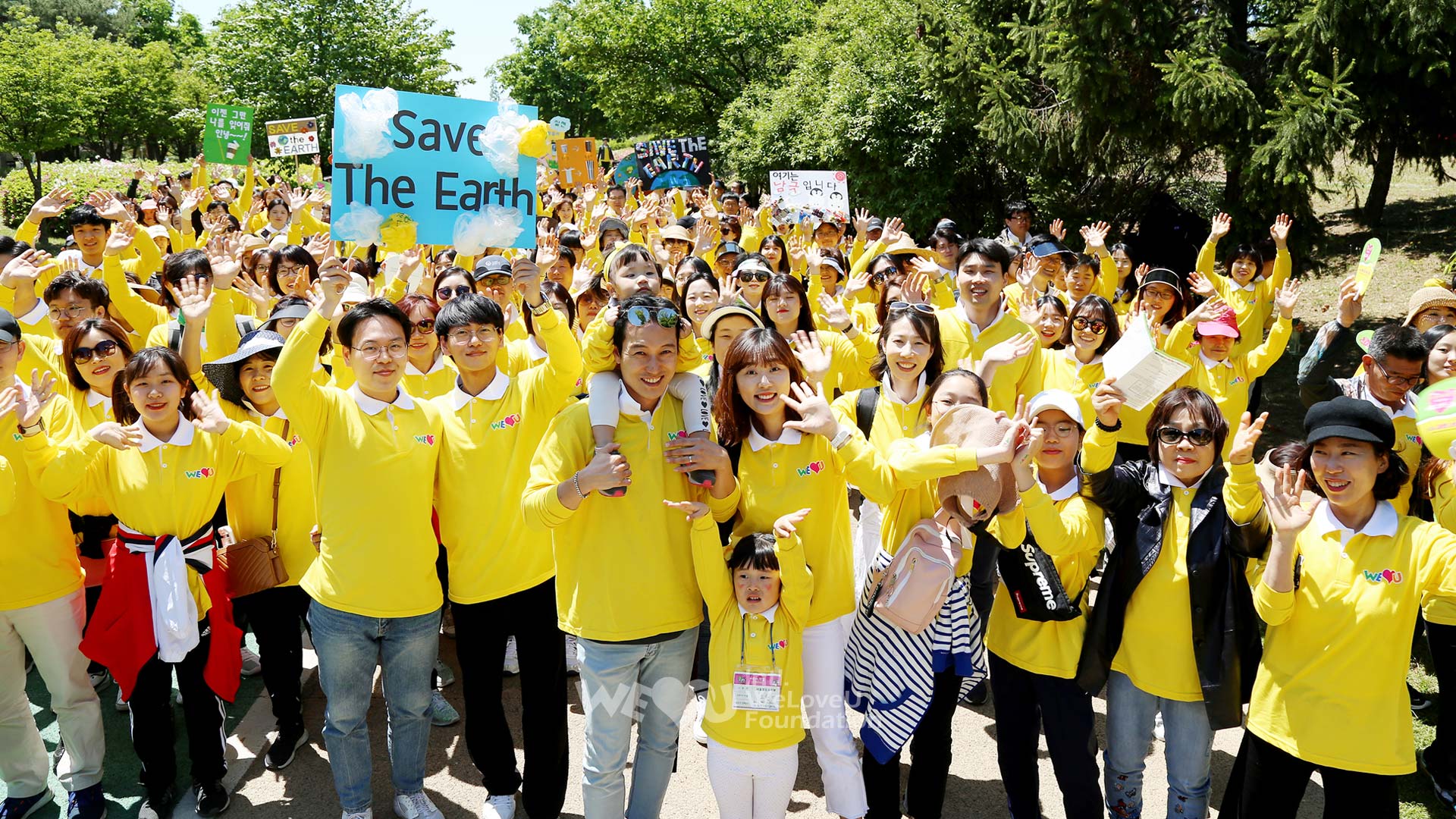 Mùa xuân đầy màu xanh đẹp ở mỗi nhánh cây. Tại Quảng trường Hòa Bình, Công viên World Cup, Seoul, làn sóng màu vàng lấp lánh tươi đẹp hơn mùa xuân. Đó là phong cảnh được làm nên bởi các hội viên Quỹ WeLoveU, những người nhóm lại để cùng nhau chuyển bước của tình yêu thương nhằm giúp gia đình làng địa cầu.