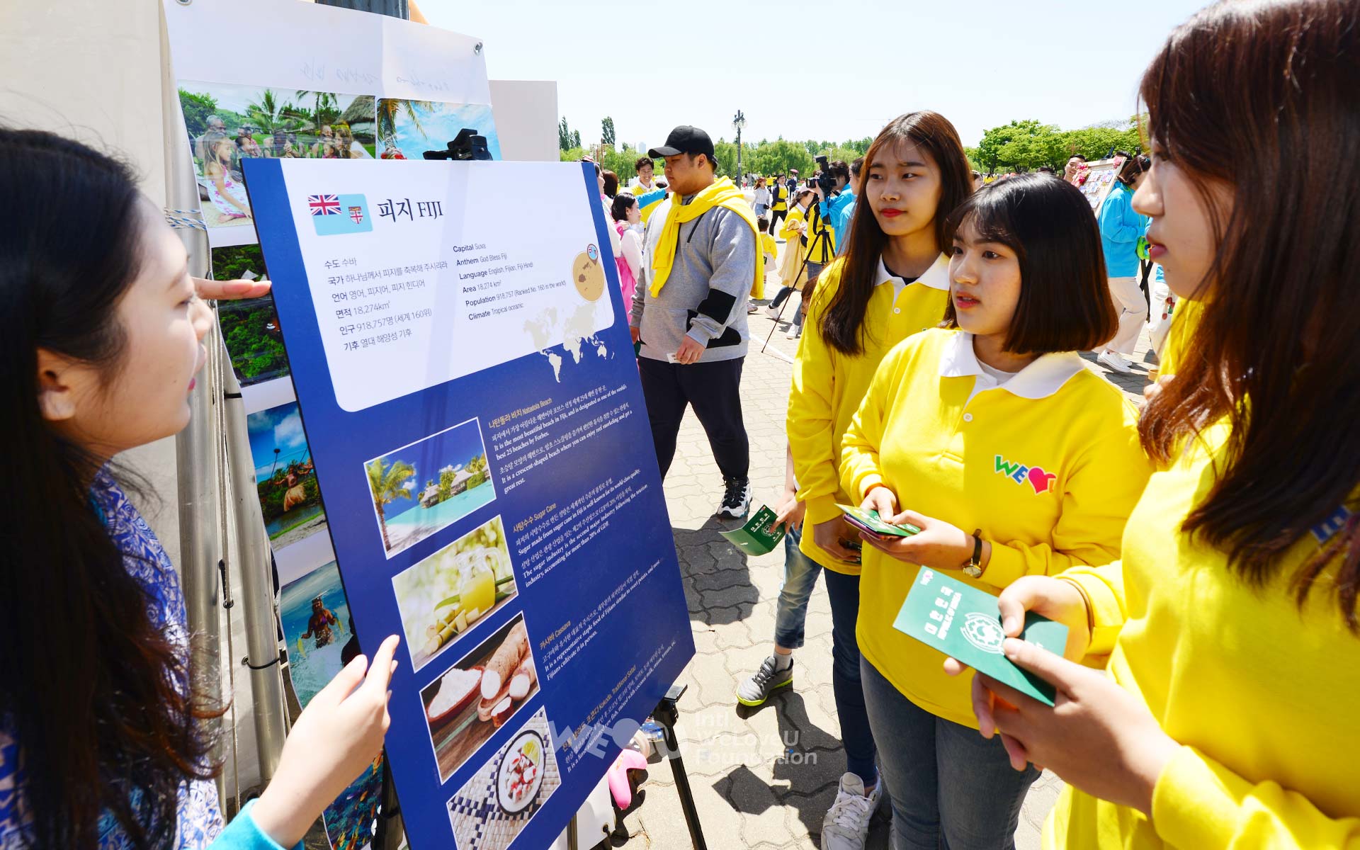 Đi hết đường, các hội viên trải nghiệm văn hóa các nước ở trại giới thiệu 7 quốc gia nước ngoài: Fiji, Bờ Biển Ngà, Jordan, Campuchia v.v… Bắt đầu bởi sân chơi truyền thống Hàn Quốc, mỗi trại có lễ phục truyền thống, đồ ăn và còn giới thiệu hàng thủ công mỹ nghệ và đặc sản, nên trao tặng niềm vui và lợi ích nữa. Ở giữa quảng trường, các bảng pano được triển lãm để cho biết về vấn đề dân tị nạn đang xảy ra trên khắp làng địa cầu, và về tính nghiêm trọng của thảm họa khí hậu.