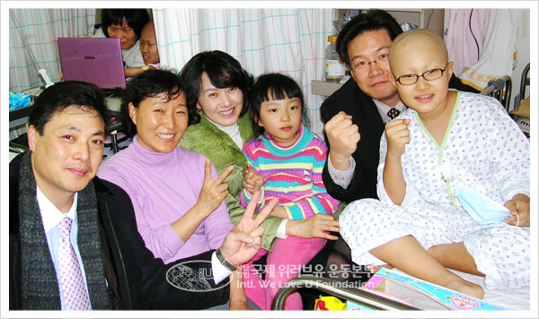 On December 12, afternoon, the Intl. WeLoveU Foundation members visited the children’s wing of the National Cancer Center, where a child who received financial aid through the New Life Love Concert was hospitalized. That day, Jong-hyeon (not real name, 12), who had been staying in an aseptic room, was about to leave the hospital temporarily, having the bone-marrow transplantation operation ahead.