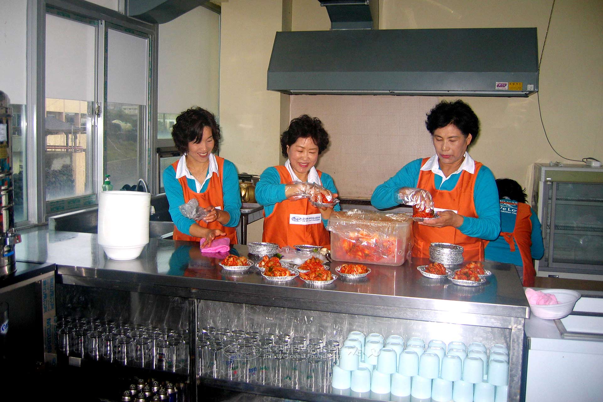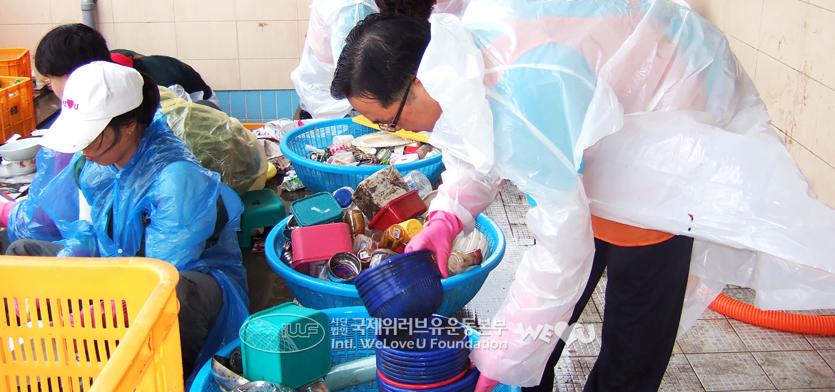 Volunteers moved dishes from the most severely damaged area, Seong-hwan basement shops at Donam-dong to Samyamg beach public bath at Samyang-dong and cleaned them. 15 members of IWF cooked soup with chopped beef and various vegetables for the volunteers and the victims. They offered 150 meals along with snacks and beverages. They also helped washing polluted dishes and comforted the victims so that they could start again with hope.