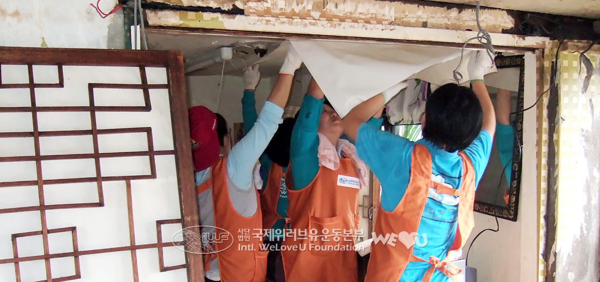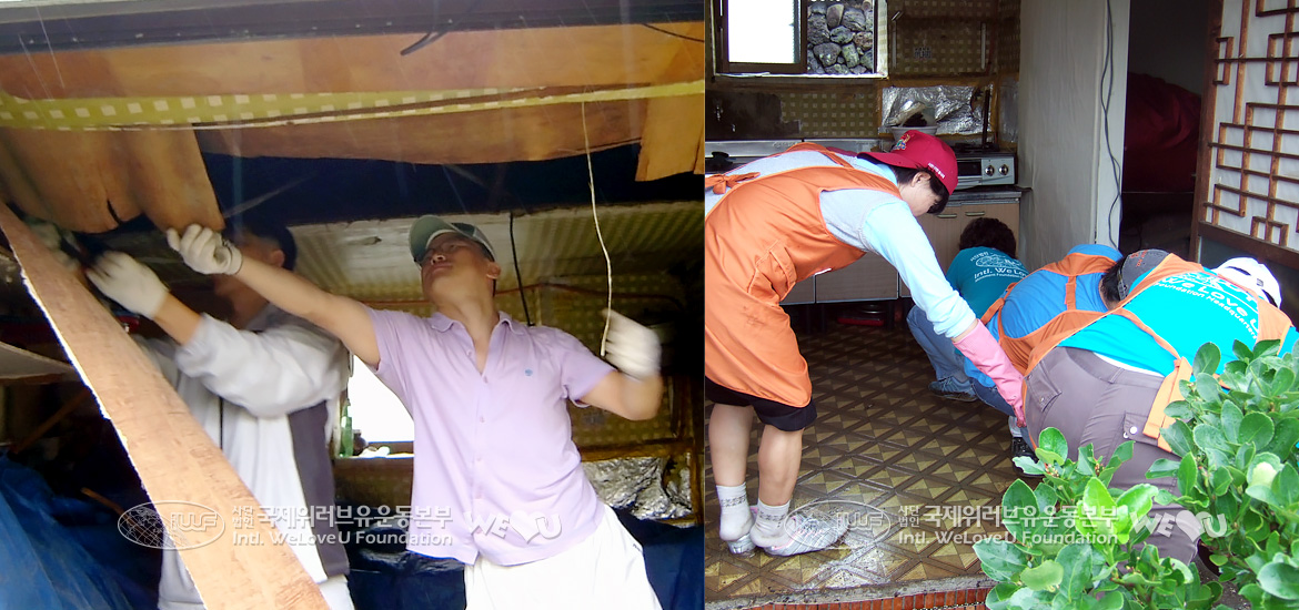 On October 7, the IWF members in alliance with the Jeju Voluntary Service Center visited senior citizens living alone whose damaged houses were damaged. A total of 30 members of the IWF, including a member who is carpenter, joined in the relief efforts for the flooded area of Hwabuk-dong. Won Sun-jae the head of Jeju region of IWF explained the purpose of their volunteer efforts by saying, “There were not enough volunteers for the past restoration work for the flooded area, so we decided to participate in this relief work again.” Lee Seung-hee the Secretary General of Jeju City Voluntary Work Center expressed her thanks to the IWF volunteers who joined, instead of enjoying their holidays, and asked for continuing concern and support.