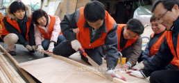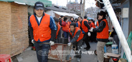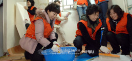 On December 27 when the winter wind was cold, a warm breeze of love blew at an alley in Geoyeo-dong, Songpa-gu, Seoul. For the senior citizens overwintering in coldness and loneliness, over 70 volunteers from the New Life Welfare Foundation came out to serve them. They repaired their places, and replaced wallpapers and laminated papers for floor and boiler as well as donating rice, instant noodles and coal briquettes. They had brought cleaning outfits, wallpapers, laminated papers for floor, wood, tools, paint and a new boiler, and started to work from early morning.