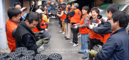 All the service activities were completed at the sunset. PR Ambassador Kim Bo-seong complimented the spirit of volunteer service and solidarity of the members and said, “I’m happy and empowered since I can do good works with the members.” The volunteer members also smiled a happy smile at the thought that the senior citizens would have a warm winter. Though the faces of the members were stained with the black coal, they were more beautiful than anyone else in the world.