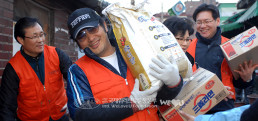 As the house-repair and cleaning up finished, coal briquettes and rice were delivered to the senior citizens. Shouting, “Yo-ho, yo-ho,” the volunteers delivered the coal briquettes, standing in a queue, and piled them in the places of the elders in order. Kim Bo-seong the New Life Welfare Foundation PR Ambassador and Yang Dong-jeong the head of ward office also delivered the coal briquettes, rice and instant noodles together with the members. The senior citizens smiled brightly, saying, “Now, we can overwinter without worry.”