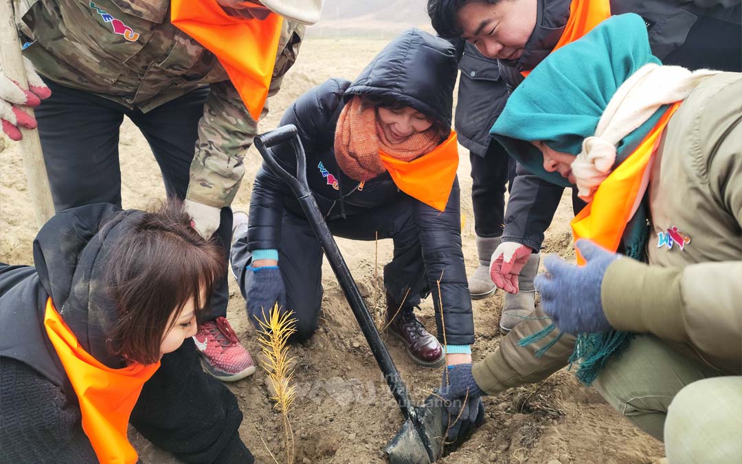 First, the city hall staff plowed the ground where the trees would be planted, and the WeLoveU members dug the ground and planted the young trees.